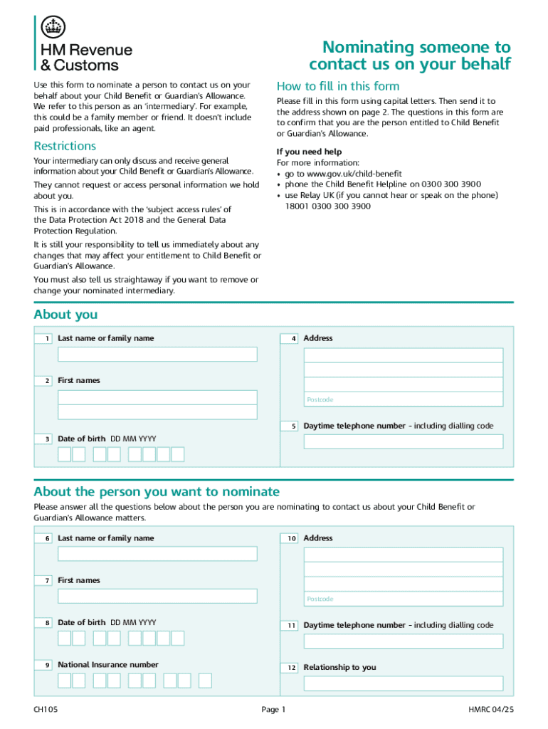 Get the free Nominating an Intermediary for Child Benefit or Guardian's Allowance