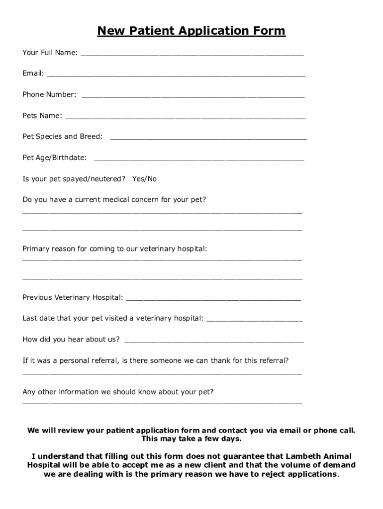 New Patient Application Form is not the form you're looking for?Search for another form here.