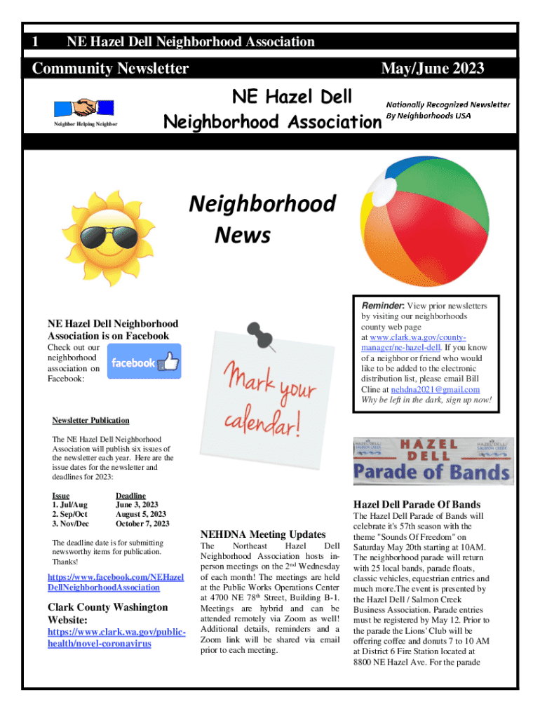 Get the free Ne Hazel Dell Neighborhood Association Community Newsletter - clark wa
