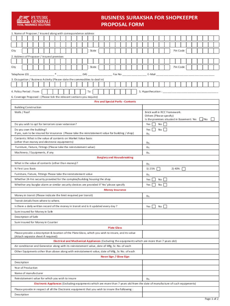 Get the free Business Suraksha for Shopkeeper Proposal Form