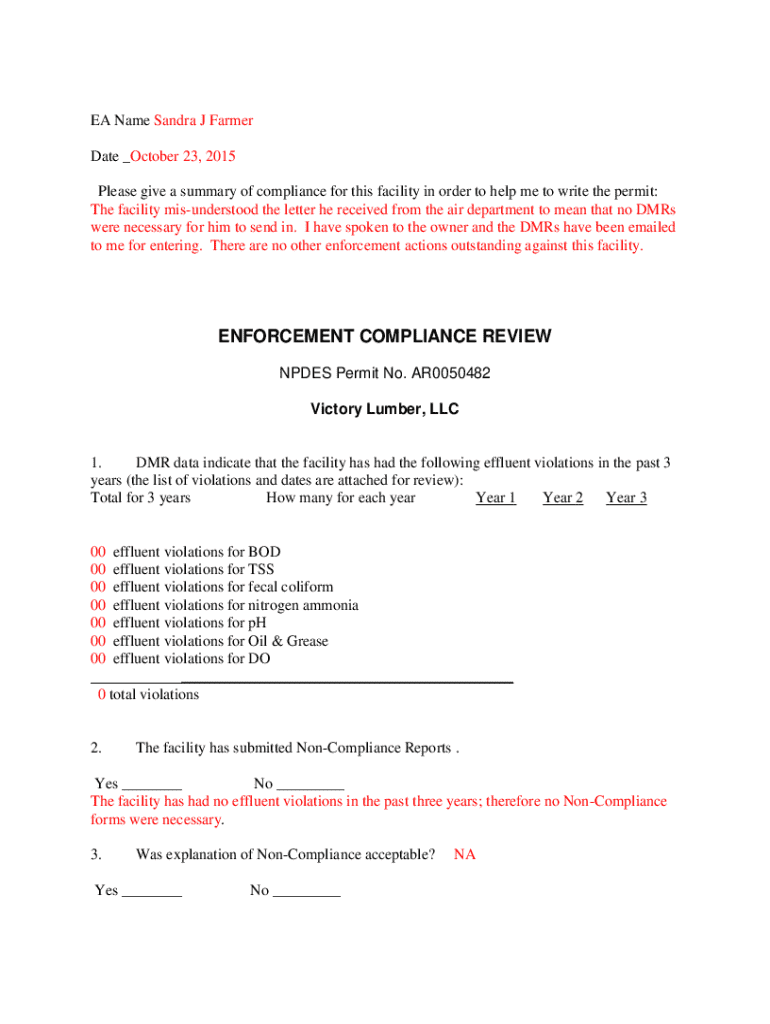 Get the free Npdes Permit Compliance Review for Victory Lumber, Llc