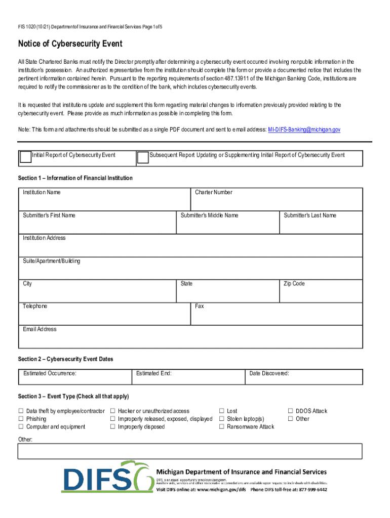 Get the free Notice of Cybersecurity Event