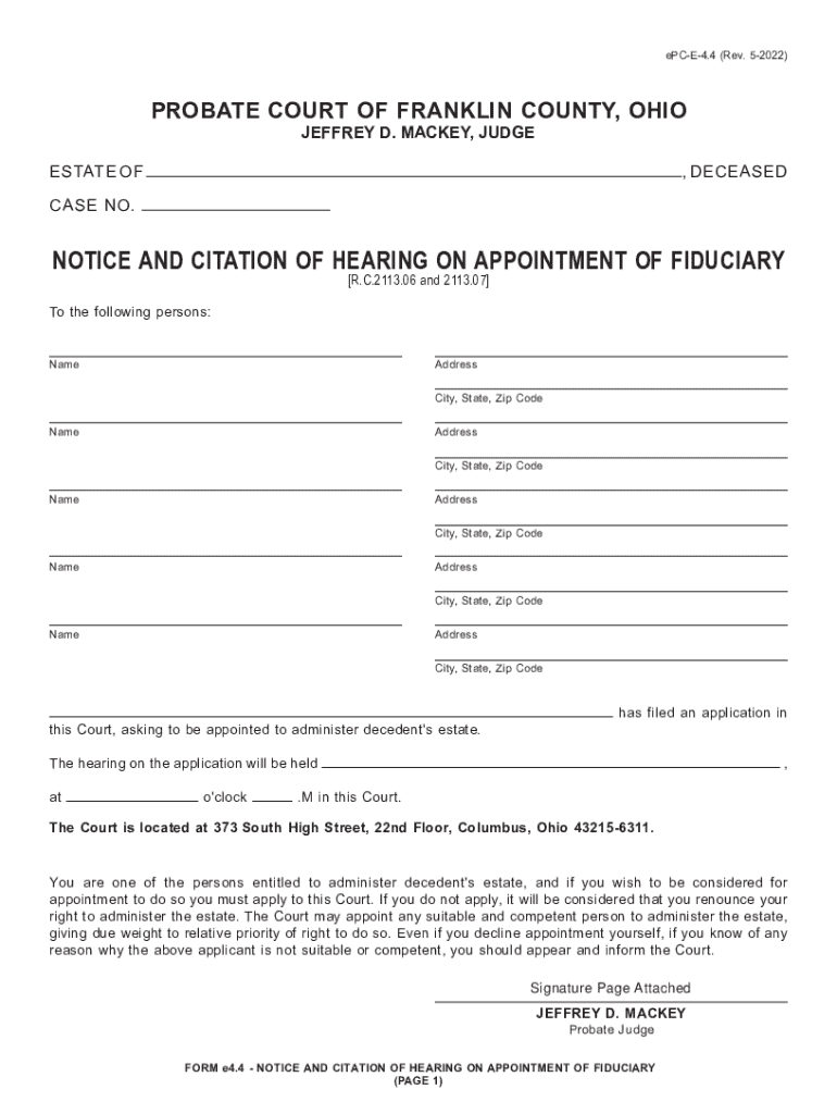 Get the free Notice and Citation of Hearing on Appointment of Fiduciary