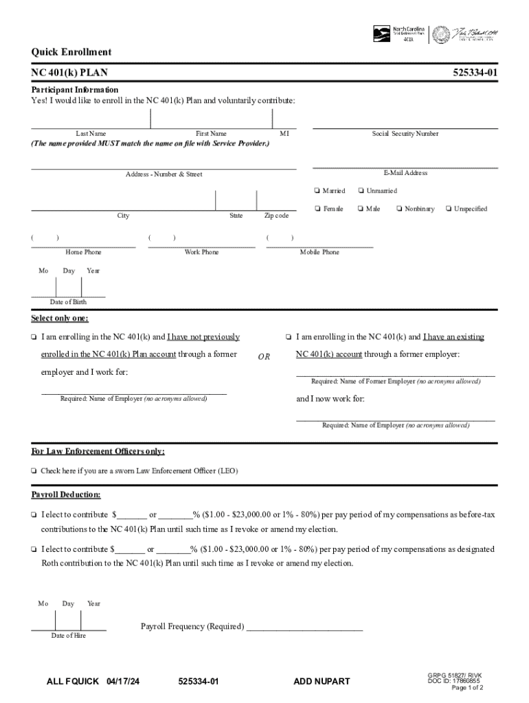 Comprehensive Guide to the NC 401k Plan Enrollment Form