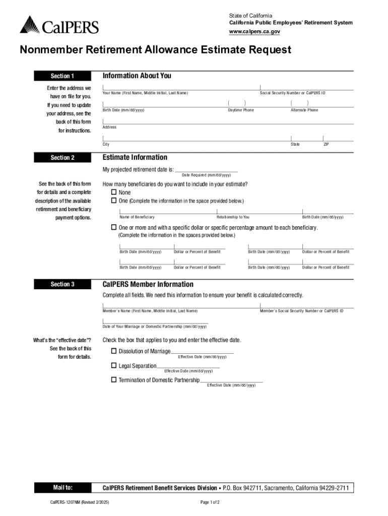The nonmember retirement allowance estimate form is a critical document for individuals who are considering retirement but do not hold membership in specific retirement systems. This form serves as a preliminary estimate of the retirement benefits available, allowing users to ascertain what they can expect upon retirement.