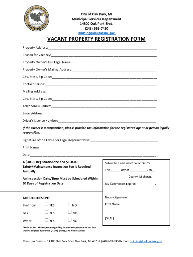 Get the free Vacant Property Registration Form