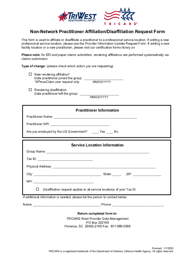 How to fill out non-network practitioner affiliationdisaffiliation request