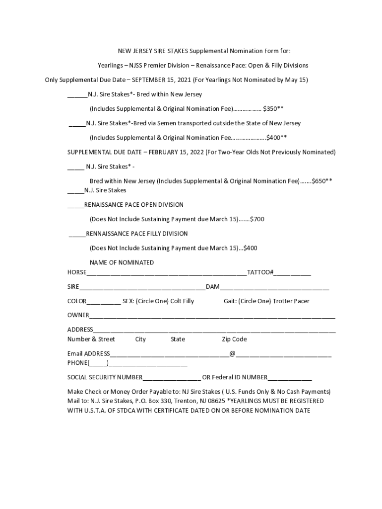 Get the free New Jersey Sire Stakes Supplemental Nomination Form