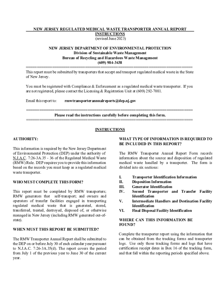 Get the free New Jersey Regulated Medical Waste Transporter Annual Report