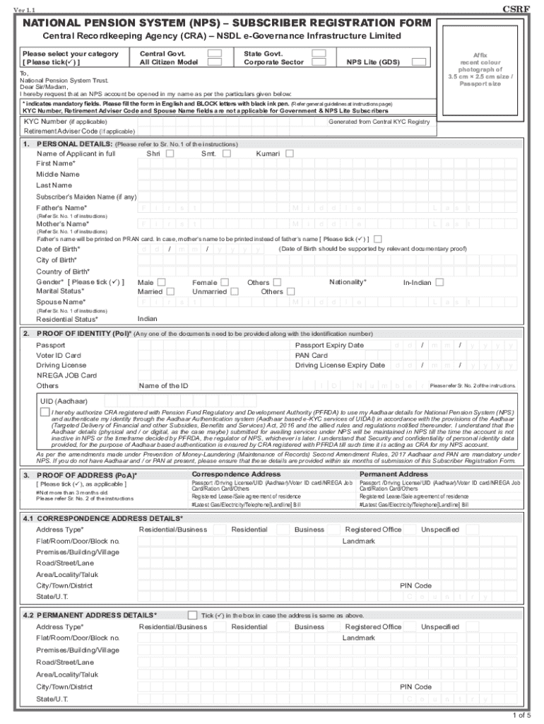Within the NPS framework, there are several forms that individuals must familiarize themselves with, starting with the Subscriber Registration Form. This foundational document enables individuals to register for the NPS and outlines personal information, such as identity proof and nominee details.