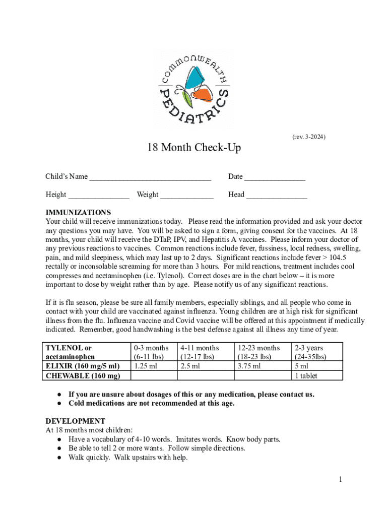 A comprehensive guide to the 18 month check-up form