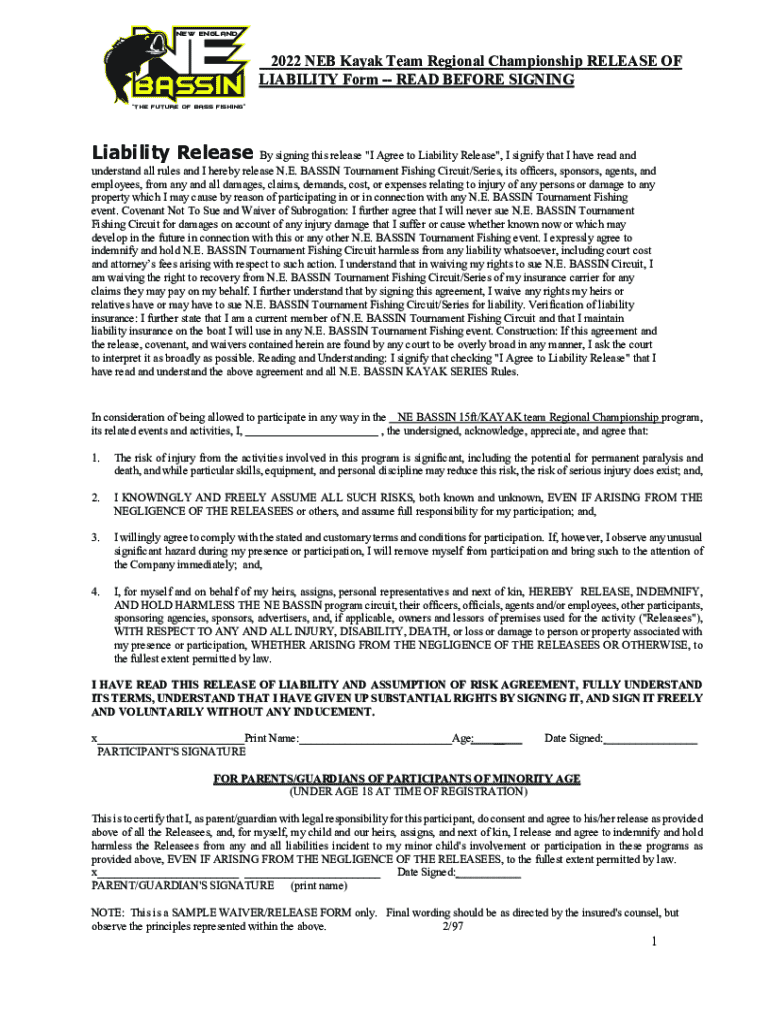 Get the free 2022 Neb Kayak Team Regional Championship Release of Liability Form