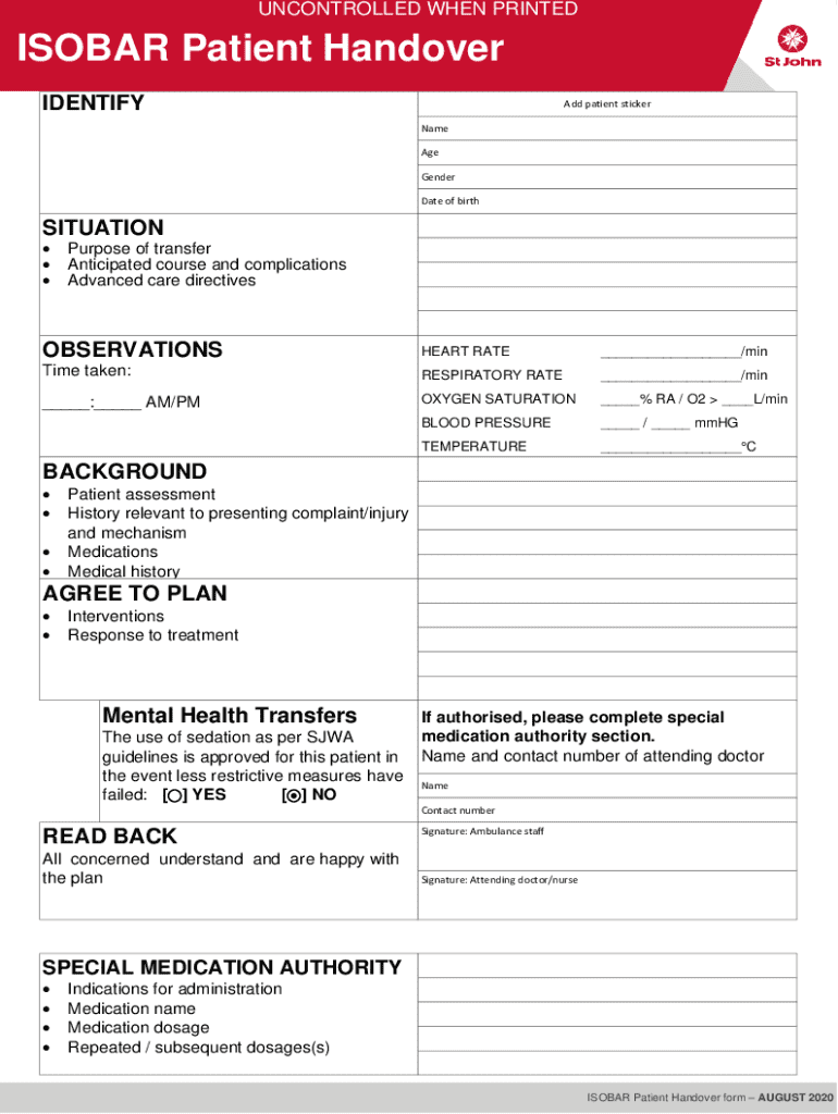 Step-by-step guide to completing the Isobar Patient Handover Form