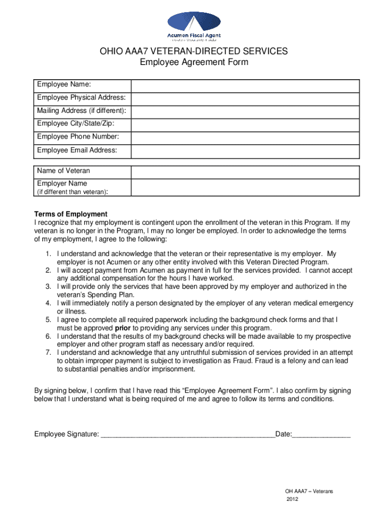 Get the free Employee Agreement Form