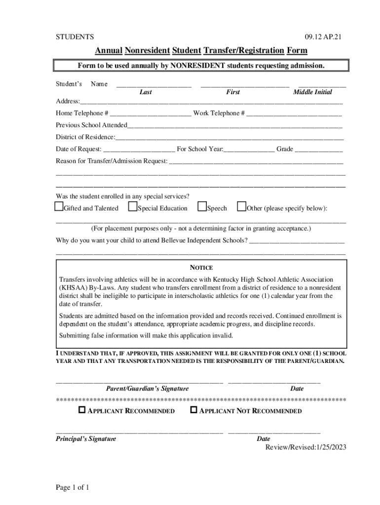Get, Create, Make and Sign annual nonresident student transferregistration