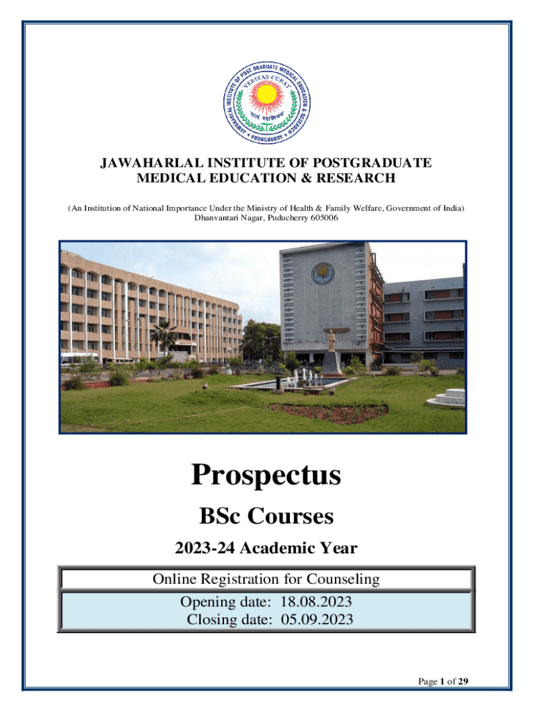 This document provides information about Bachelor of Science (BSc) programs at JIPMER, including eligibility criteria, important dates for registration, counseling, and details about the courses offered.