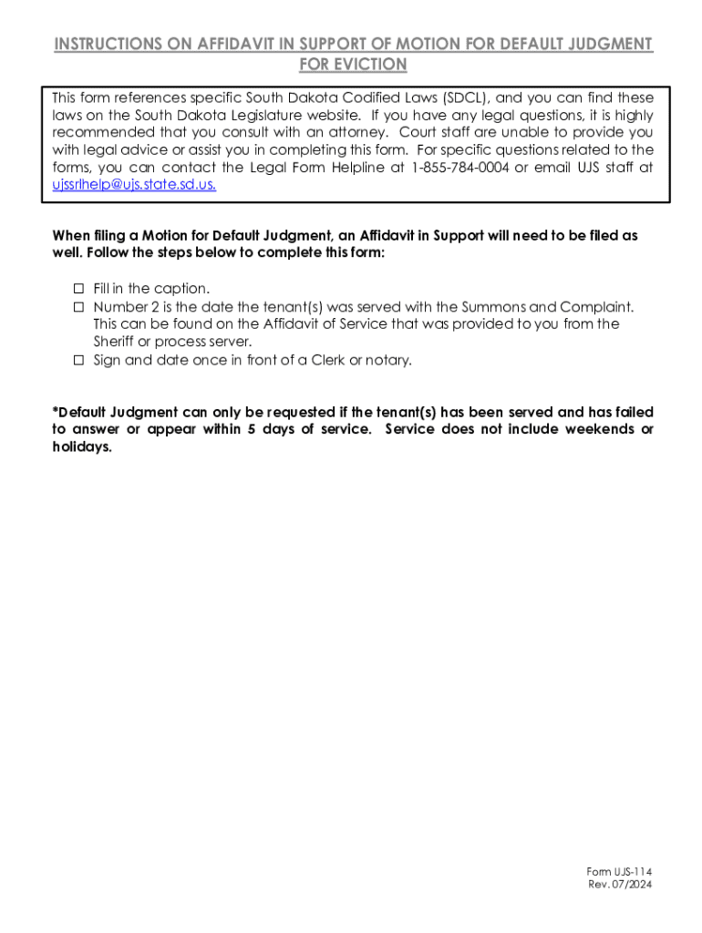 Get the free Affidavit in Support of Motion for Default Judgment (for Eviction) - ujs sd