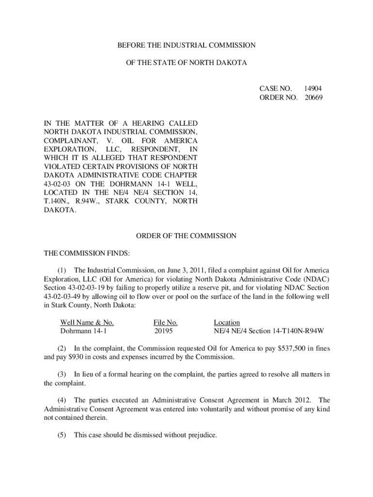 Get the free North Dakota Industrial Commission V. Oil for America Exploration, Llc - Complaint