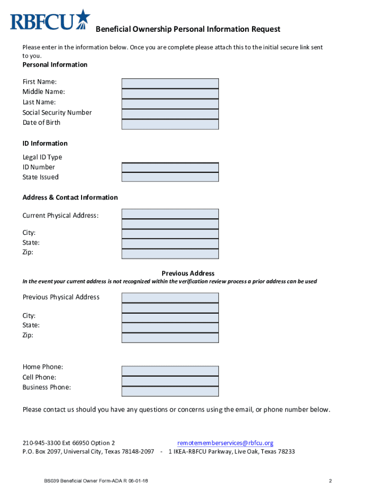 Get the free Bs039 Beneficial Owner Form-ada R 06-01-18