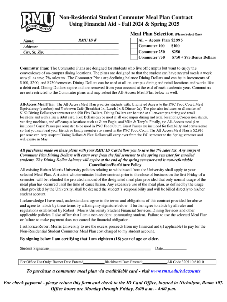 Get the free Non-residential Student Commuter Meal Plan Contract