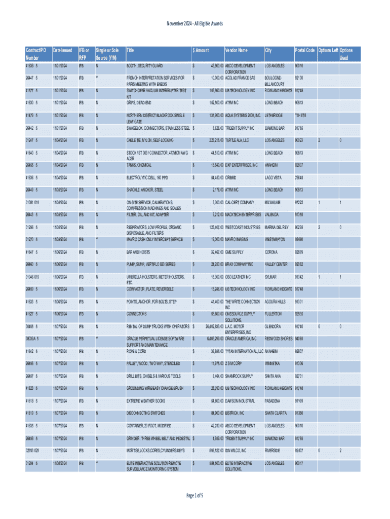 Get the free November 2024 - All Eligible Awards
