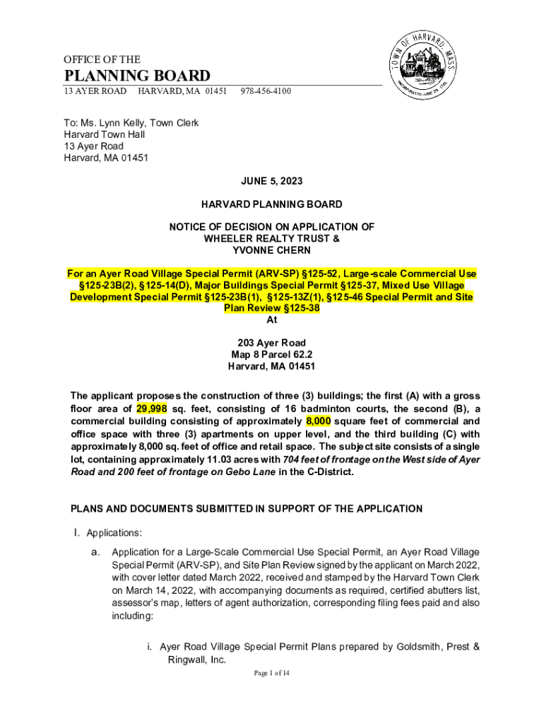 Get the free Notice of Decision on Application of Wheeler Realty Trust & Yvonne Chern