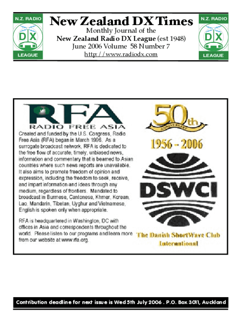 Monthly journal dedicated to DXing, featuring contributions from members, reports on shortwave radio reception, and updates on various broadcasting stations around the world.
