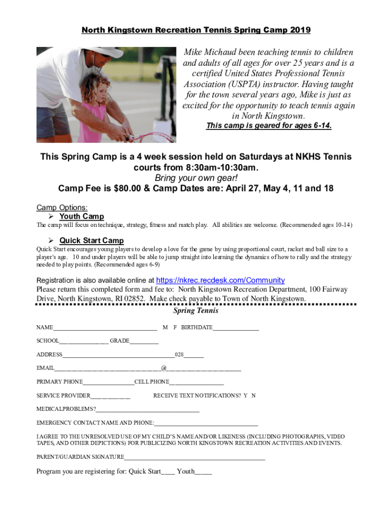 Get the free North Kingstown Recreation Tennis Spring Camp 2019
