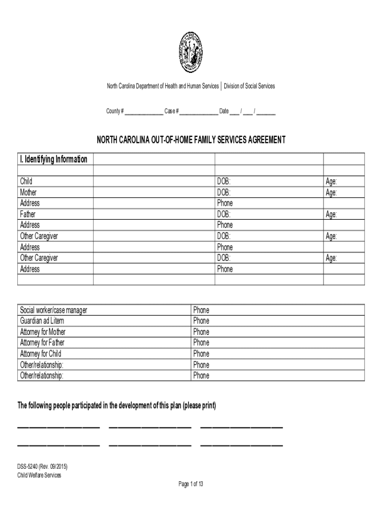 Get the free North Carolina Out-of-home Family Services Agreement