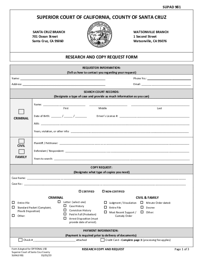 CA SUPAD 981 - Santa Cruz County 2020 free printable template