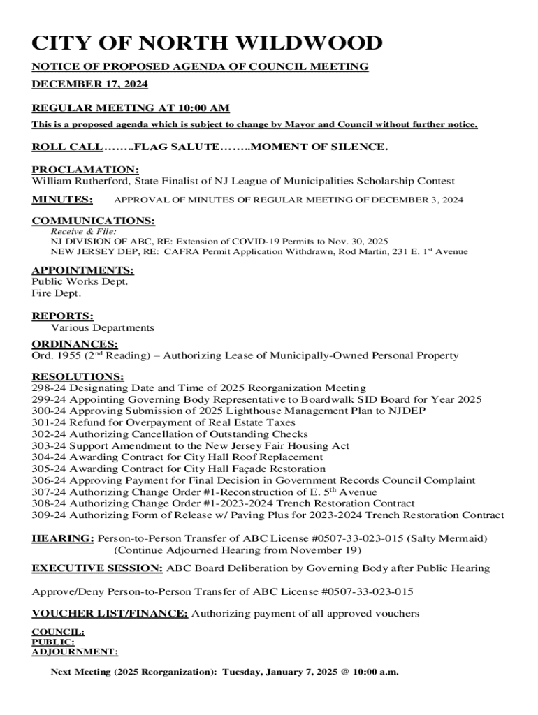 Get the free Notice of Proposed Agenda of Council Meeting