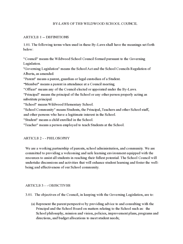 Get the free by-laws of the Wildwood School Council