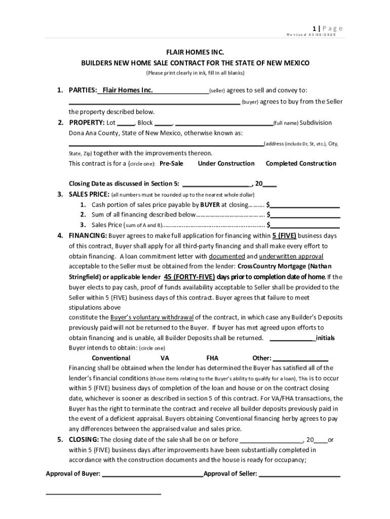 Get the free Builders New Home Sale Contract for the State of New Mexico