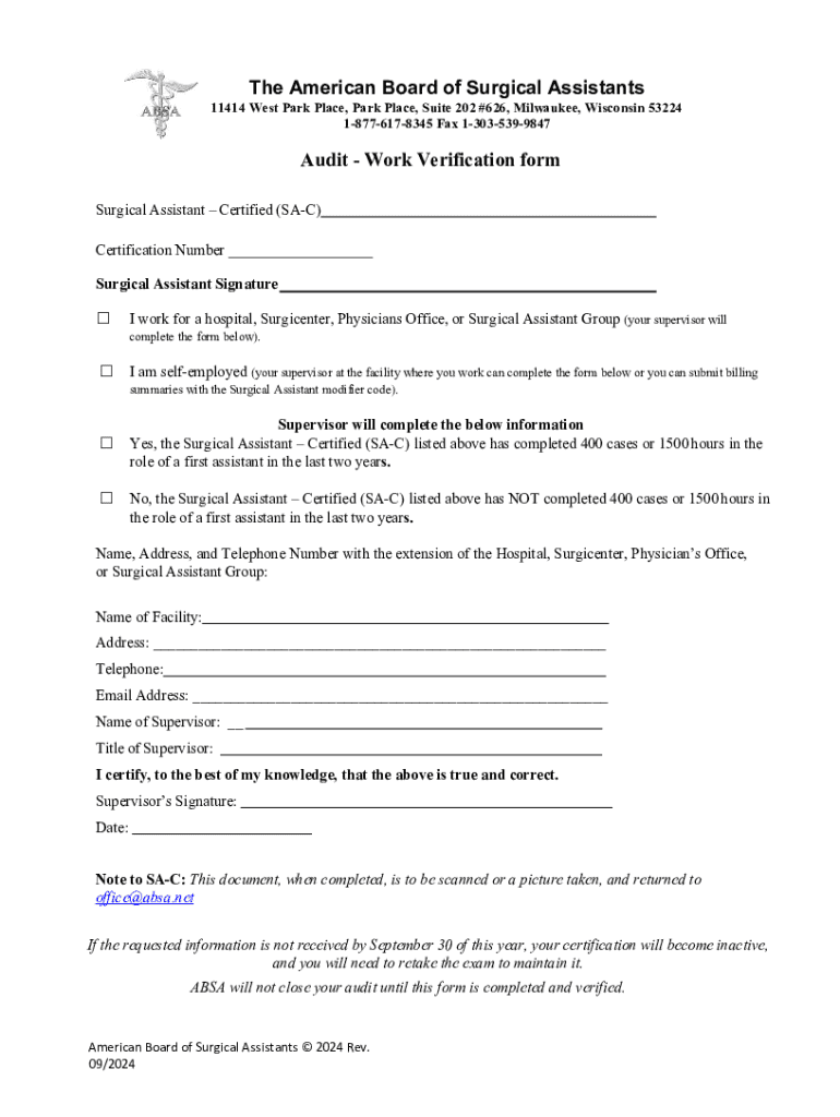Audit - Work Verification Form: A Comprehensive Guide