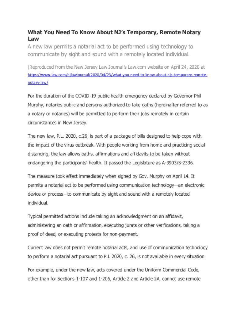 Get the free New Jersey Temporary Remote Notary Law