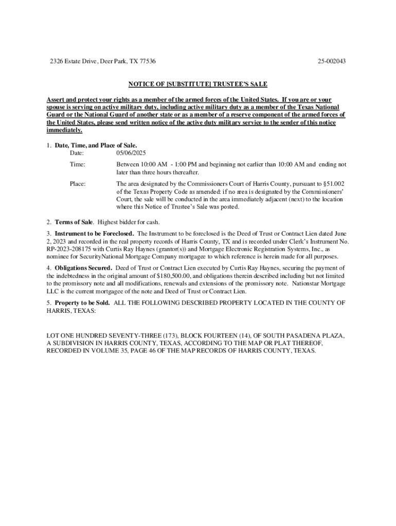 Get the free Notice of Substitute Trustee’s Sale