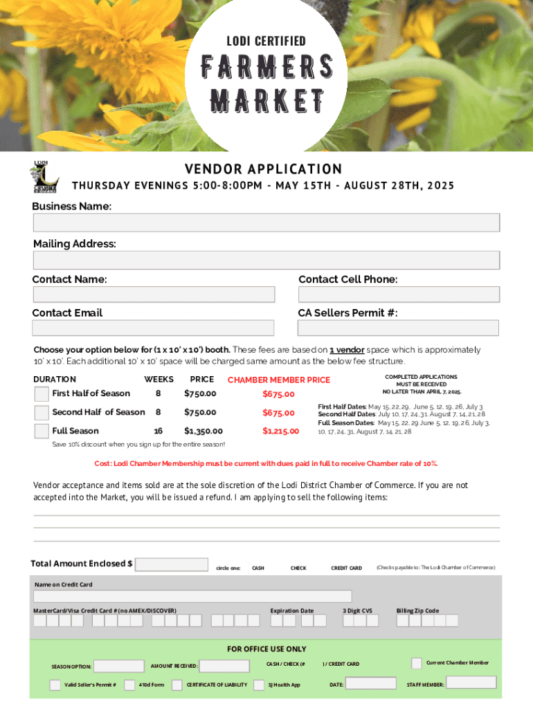 Get the free Lodi Certified Farmers Market Vendor Application