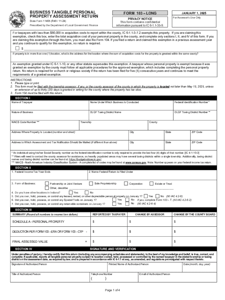 Get the free Business Tangible Personal Property Assessment Return Form 103 – Long