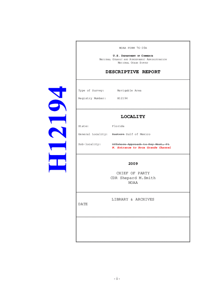 This document provides a detailed descriptive report of a hydrographic survey conducted in the Gulf of Mexico to update nautical charts, including data on survey limits, equipment, methodologies,