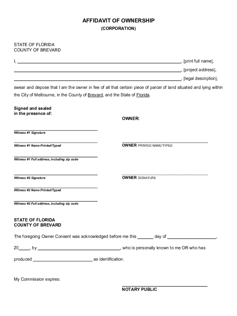 The affidavit of ownership corporation form consists of several key sections and fields designed to collect comprehensive information about ownership and the property in question. The ownership declaration is where the affiant—essentially the individual making the statement—sets forth who owns what percentage of the corporation or assets.