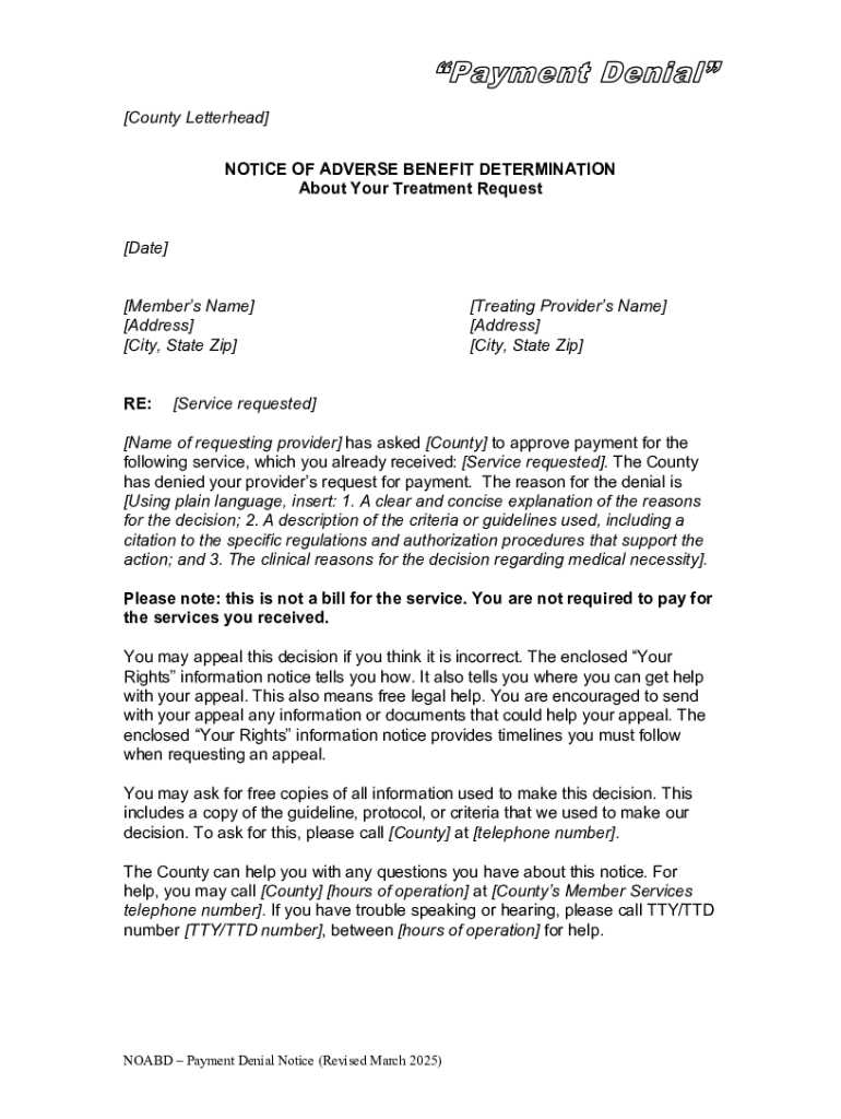 Get the free Notice of Adverse Benefit Determination
