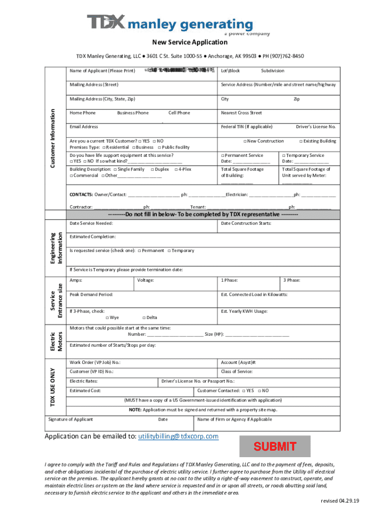 Get the free New Service Application