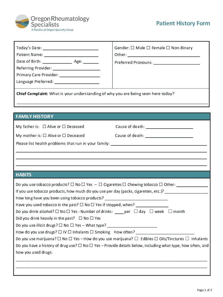 Before tackling a patient history form, it's essential to gather all required information systematically. Start by assembling personal medical records, which may include previous test results, discharge summaries, or chronic condition management plans. Additionally,, having insights into your family's health history can highlight potential health risks; preparing to ask family members for details might be necessary. Don't forget to compile a complete list of current medications, including over-the-counter supplements, along with their specific dosages.
