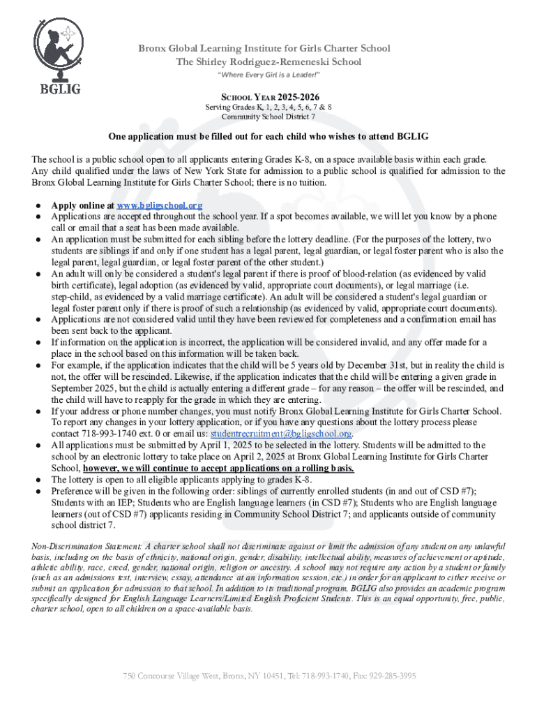 Obtener el gratis Bronx Global Learning Institute for Girls Charter School Application