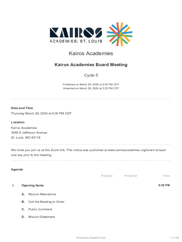 Get the free Kairos Academies Board Meeting Agenda - my epicenternow