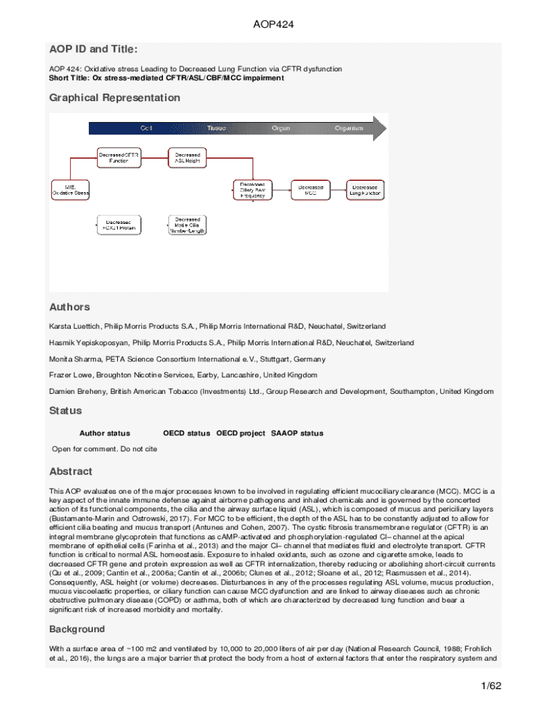 Get the free Aop 424: Oxidative Stress Leading to Decreased Lung Function Via Cftr Dysfunction