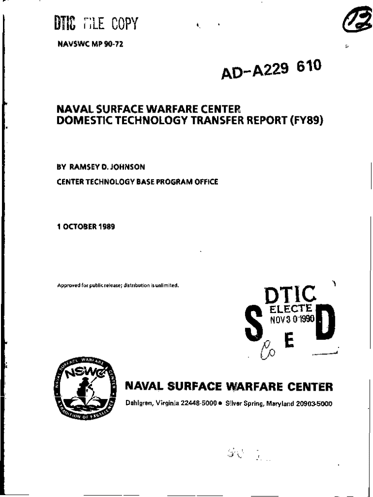 Get the free Naval Surface Warfare Center Domestic Technology Transfer Report (fy89)