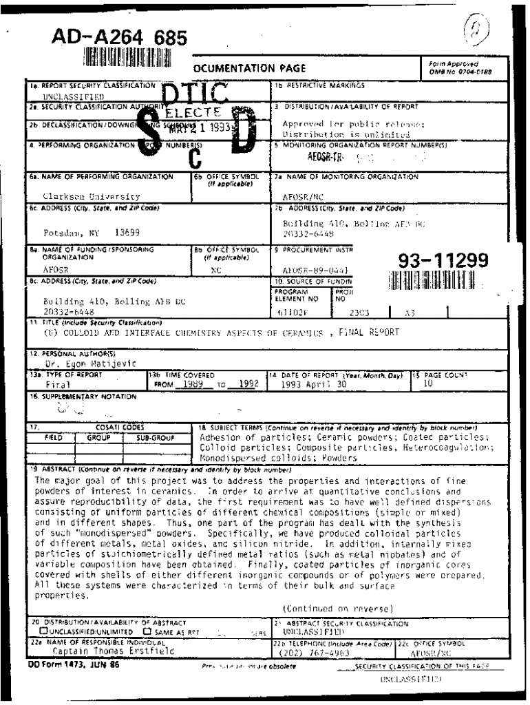 Get the free Colloid and Interface Chemistry Aspects of Ceramics, Final Report