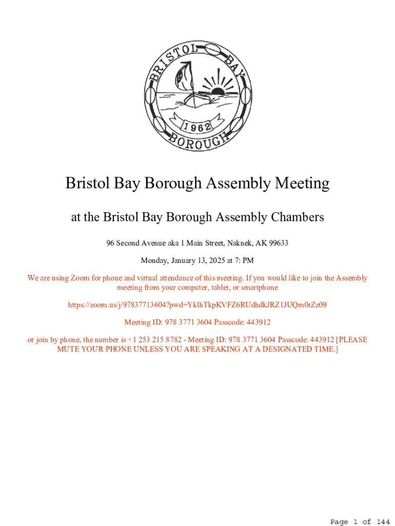 Get the free Bristol Bay Borough Assembly Meeting Agenda and Reports