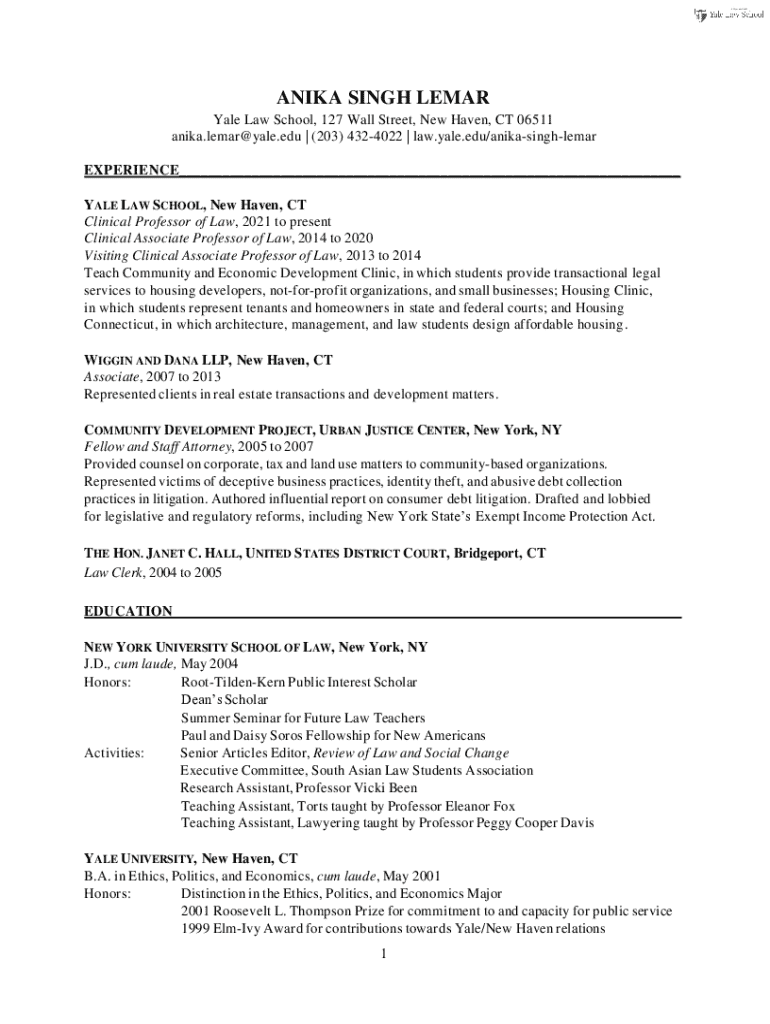 Get the free Building Builders' Clinics by Anika Singh Lemar - law yale